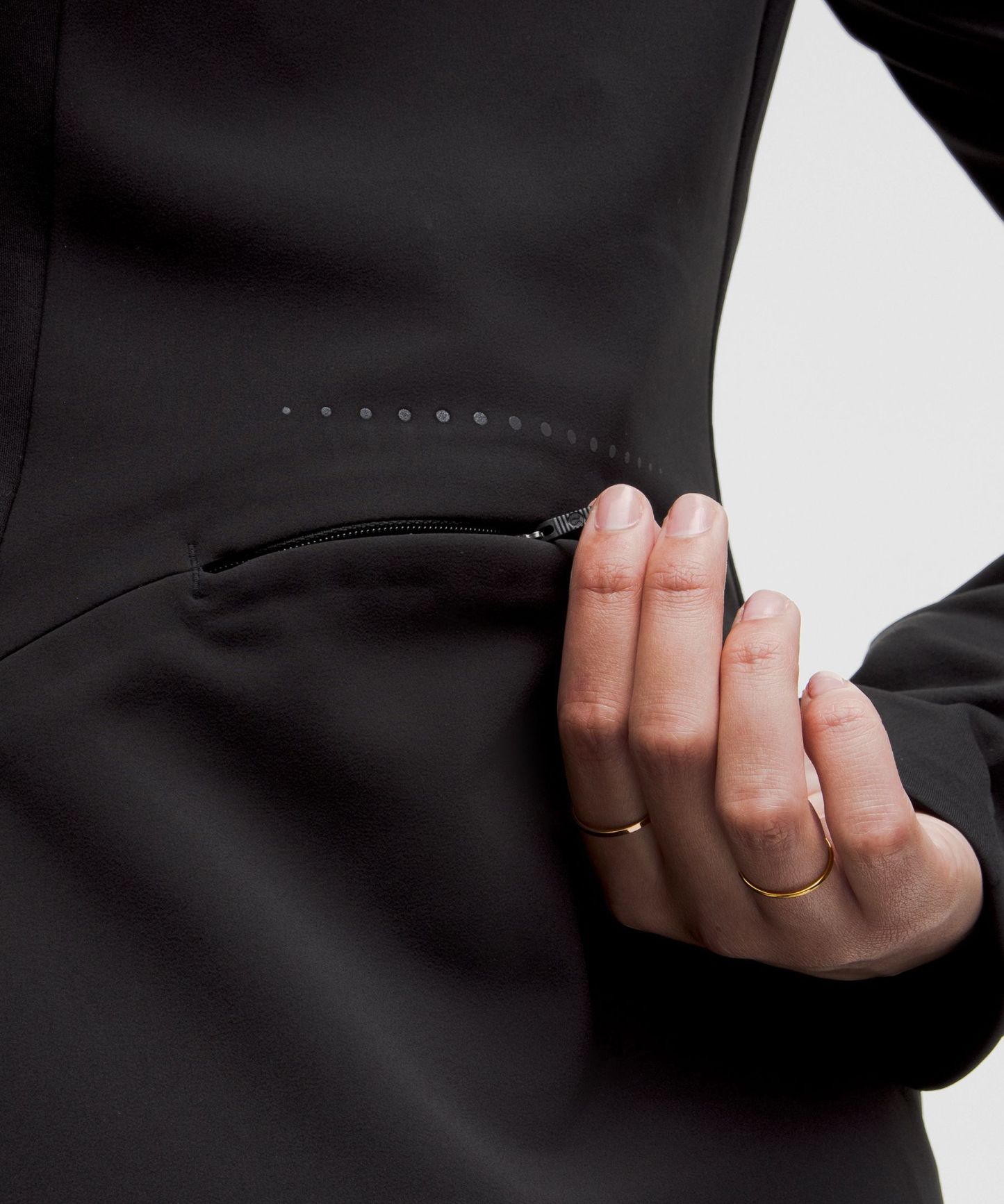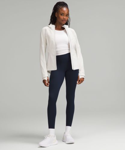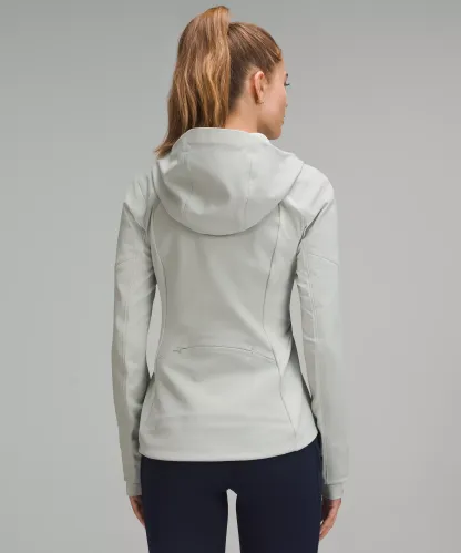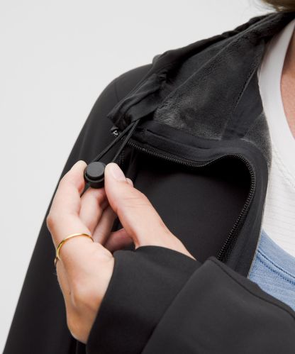 Four-way stretch, water-repellent tech fleece fabric is brushed for warmth