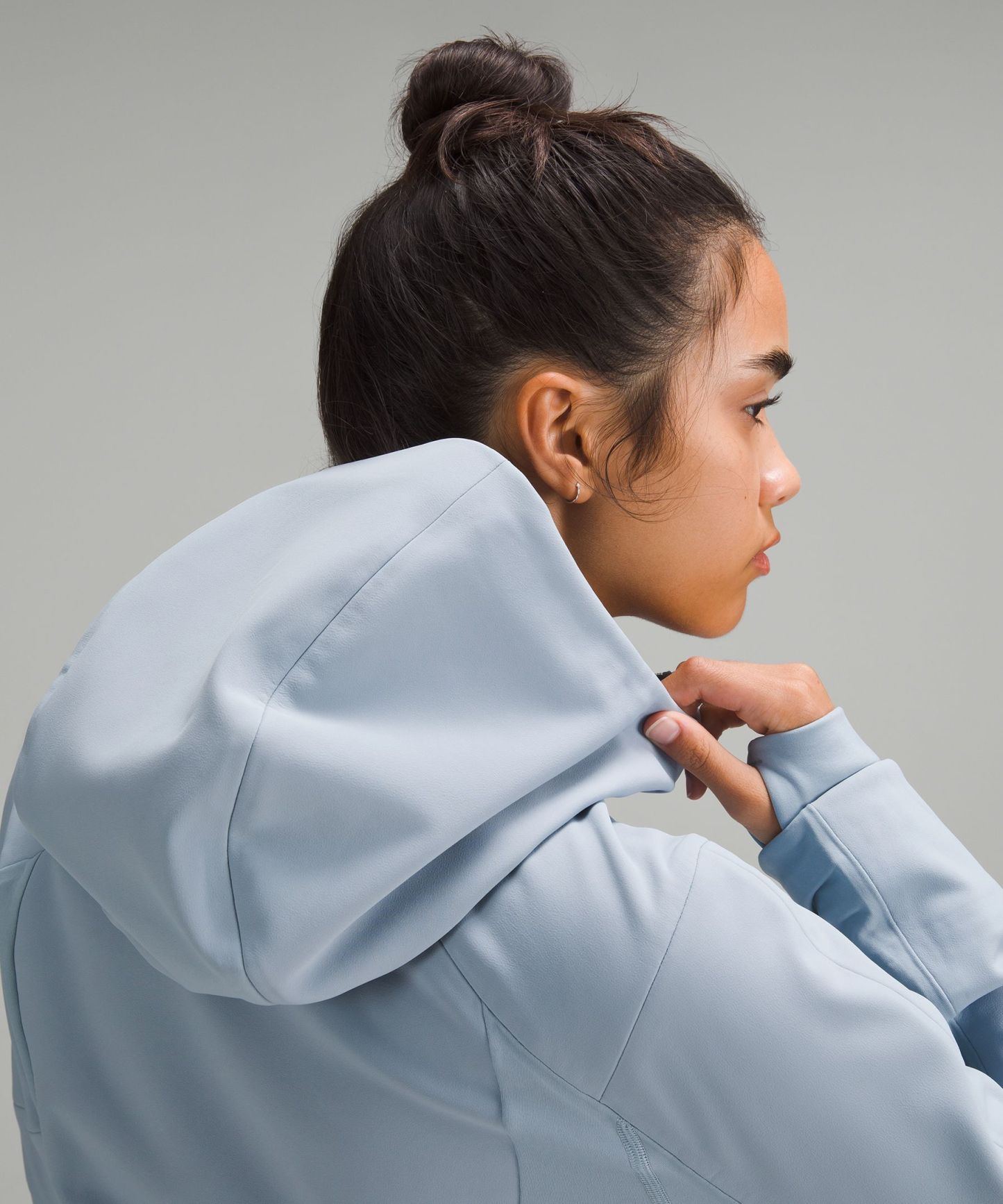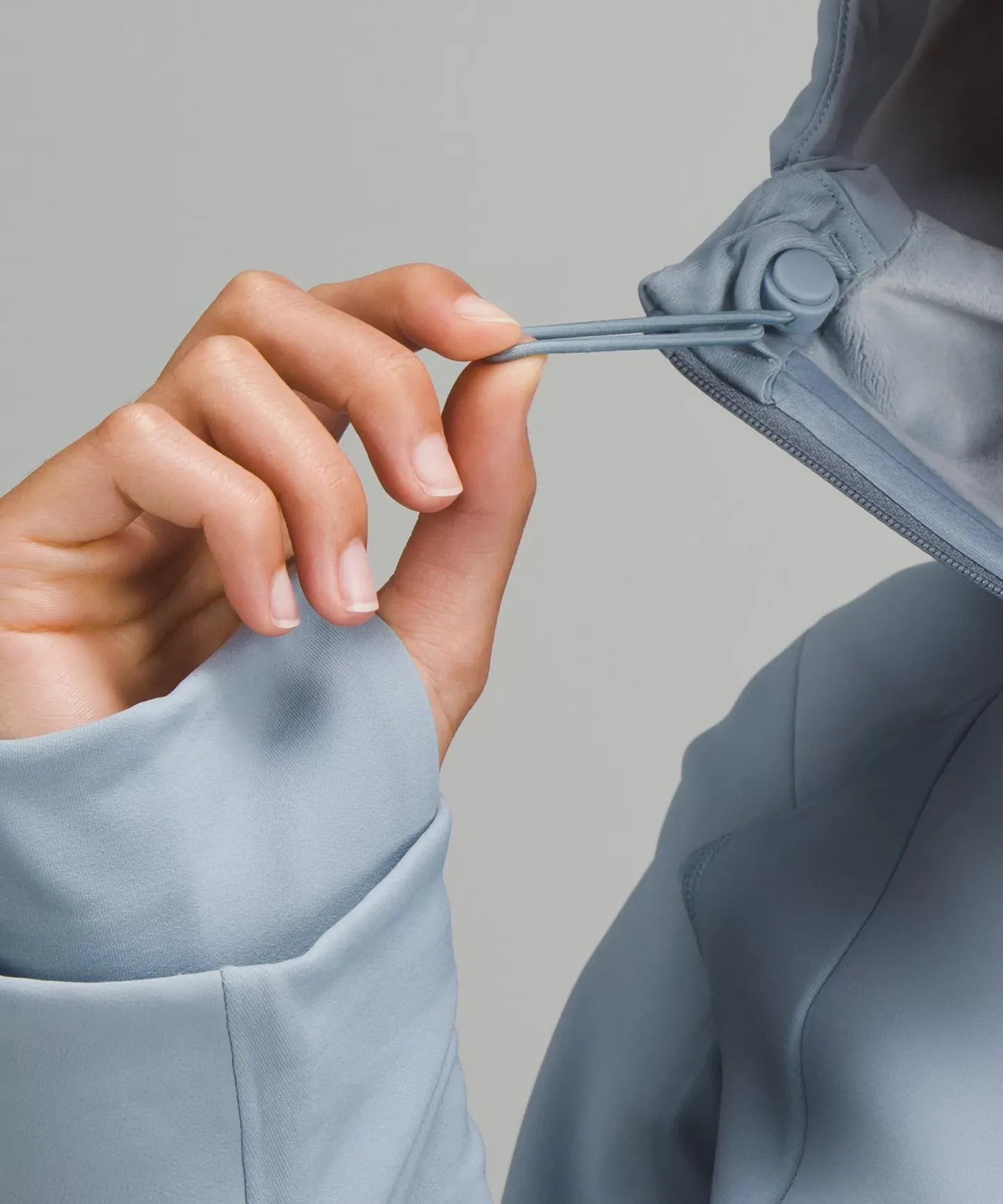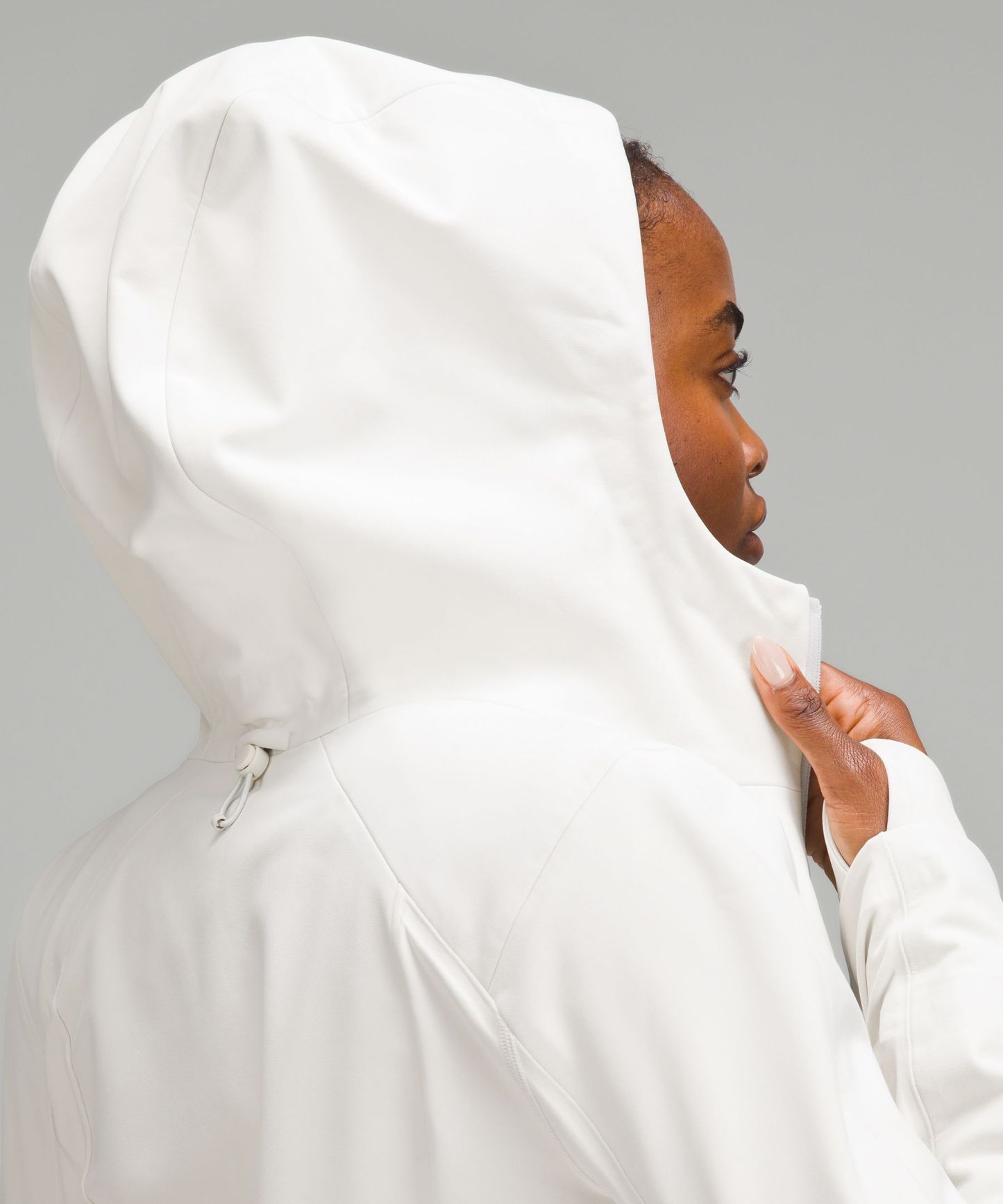 Hood cinches at the back to maintain peripheral visibility