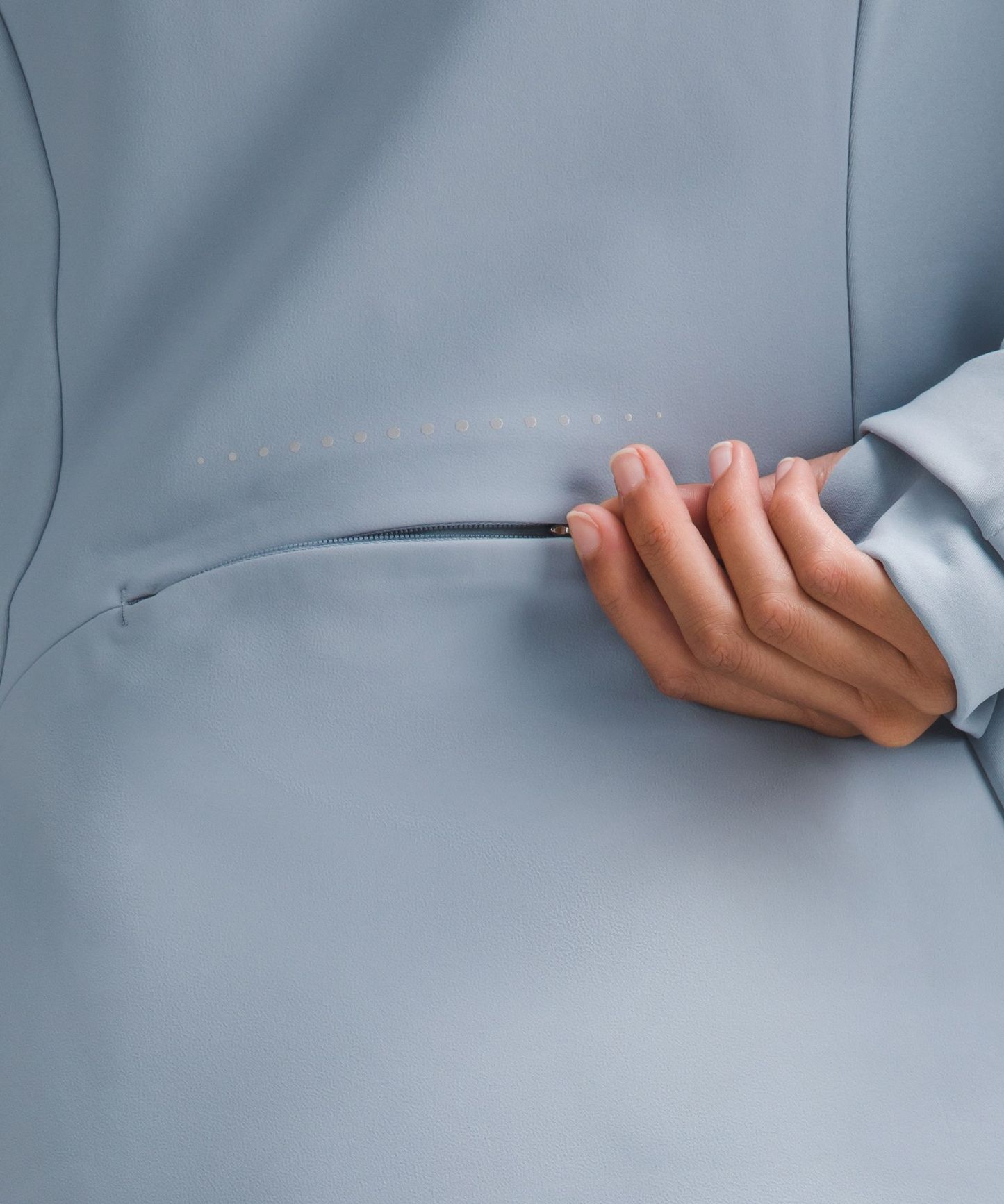 Zippered exterior pockets with a hidden phone sleeve