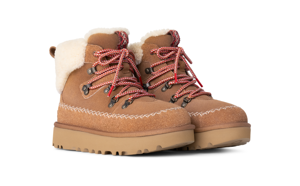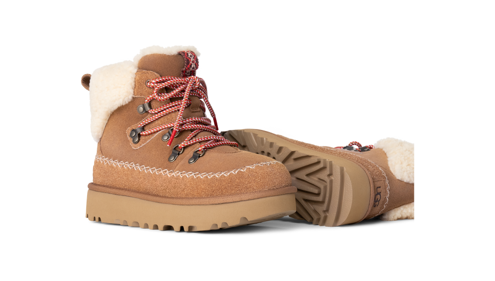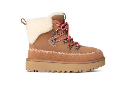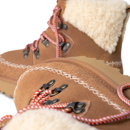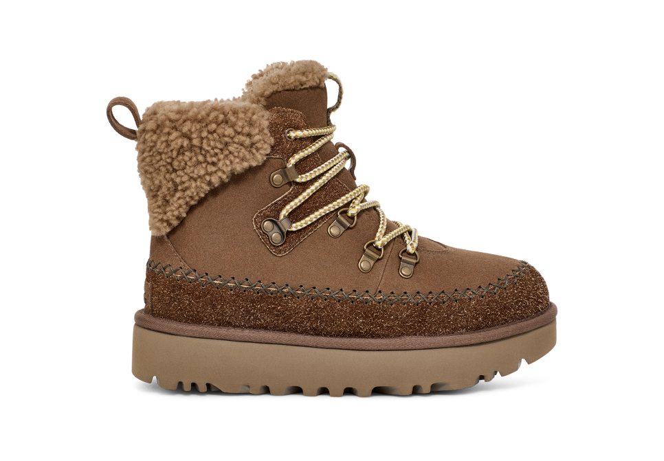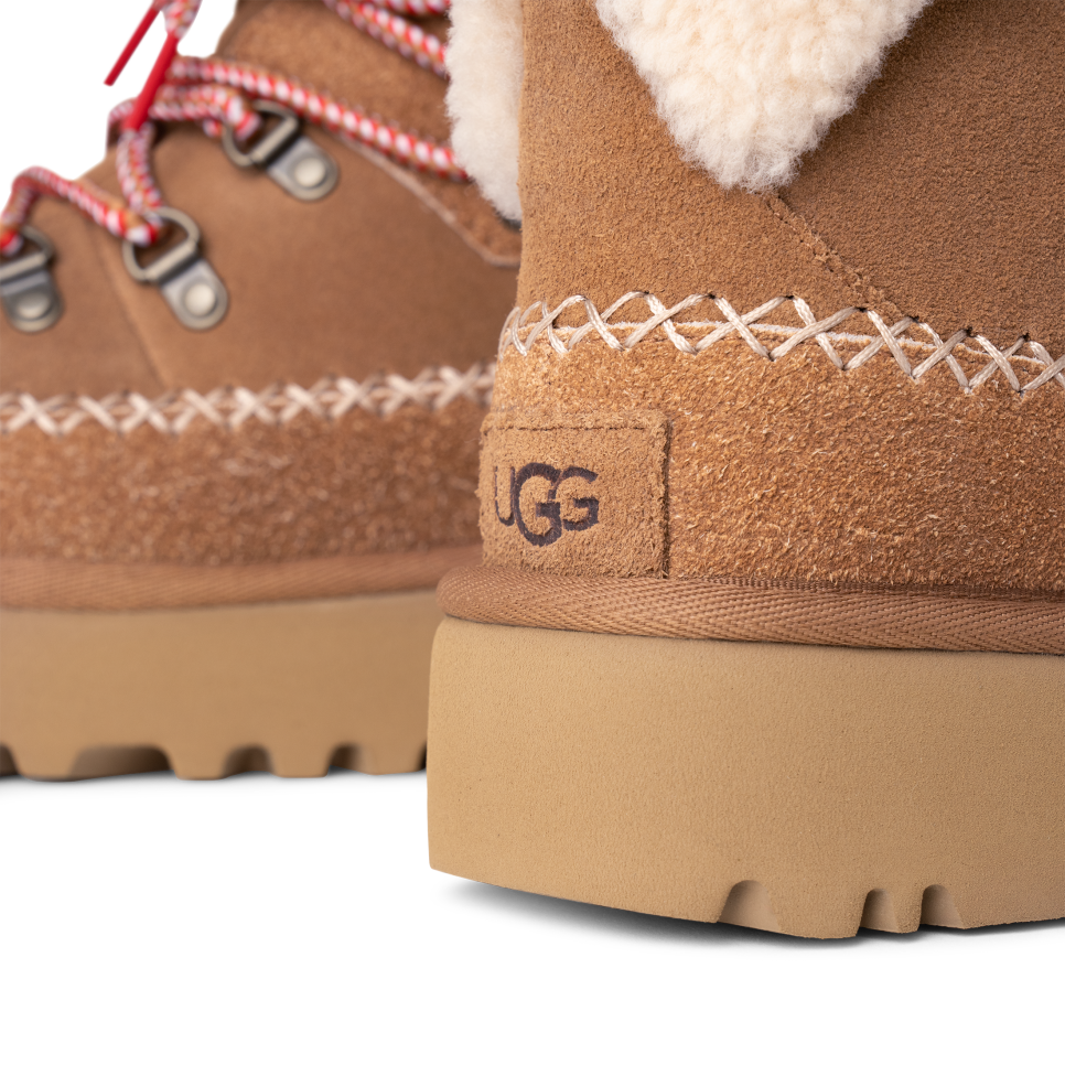 A fusion of mountain town style and premium utthhgg comfort sets the Classic Alpine Lace-Up apart. It's crafted with iconic textures like the curly sheepskin collar, upcycled utthhggplush lining, and smooth suede upper. Round laces and Heritage Twin Seam details give this boot depth, while the sugarcane EVA outsole features deeper lugs that give better traction for those first-snowfall walks.