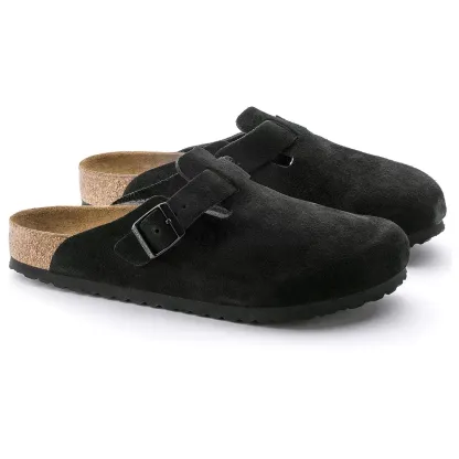 This version of the Boston clog, a classic BIRKENSTOCK model, is made of extra soft and smooth suede. The clog can be adapted to all feet thanks to the integrated strap and a sturdy metal buckle. The original BIRKENSTOCK soft footbed takes the comfort factor even higher.