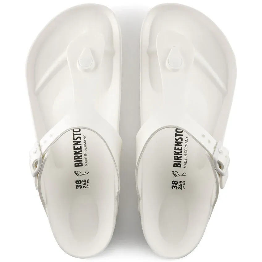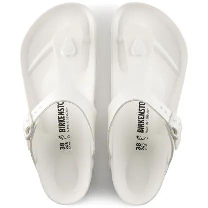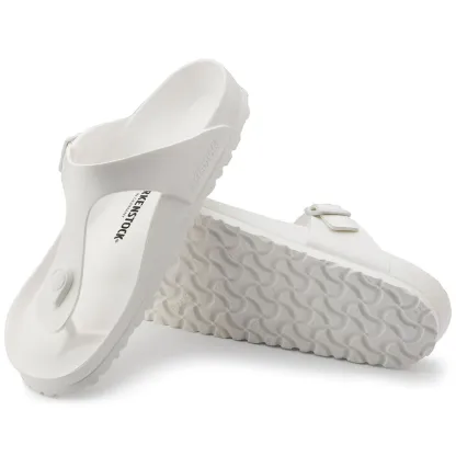 The BIRKENSTOCK Gizeh is our classic thong sandal. Modeled on the cork original, this sandal is made from ultra lightweight and highly flexible EVA. These colorful sandals are shock-absorbent, waterproof, and skin-friendly. Wear them at the beach, in the garden, or in wellness and spa areas. It's the perfect addition to your classic BIRKENSTOCK sandals.