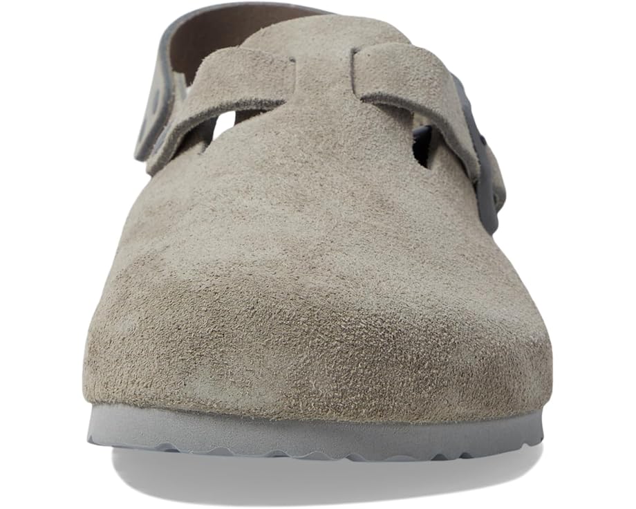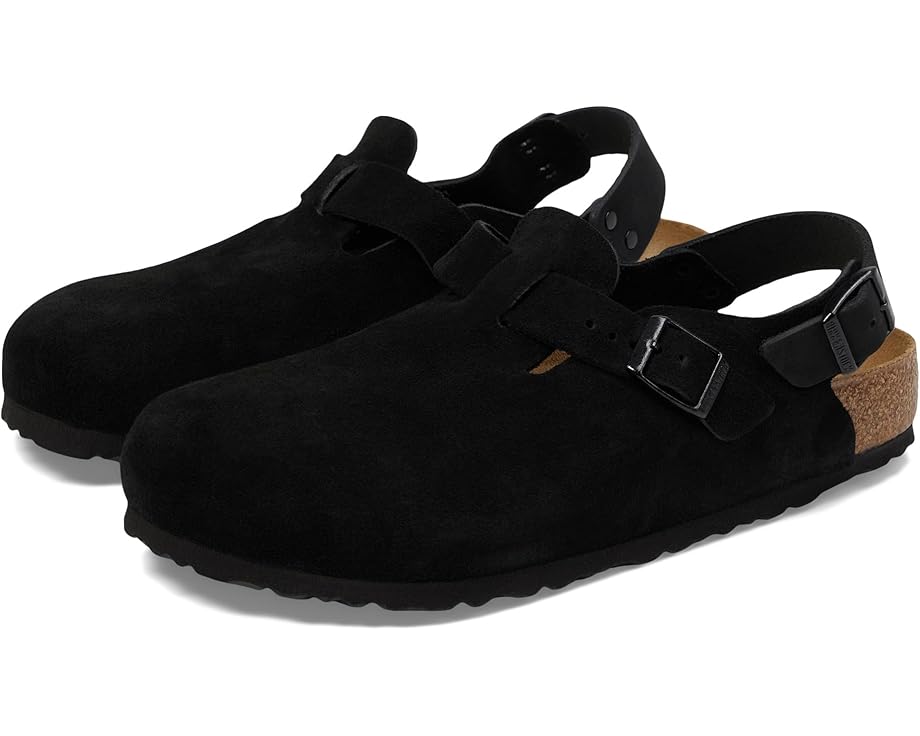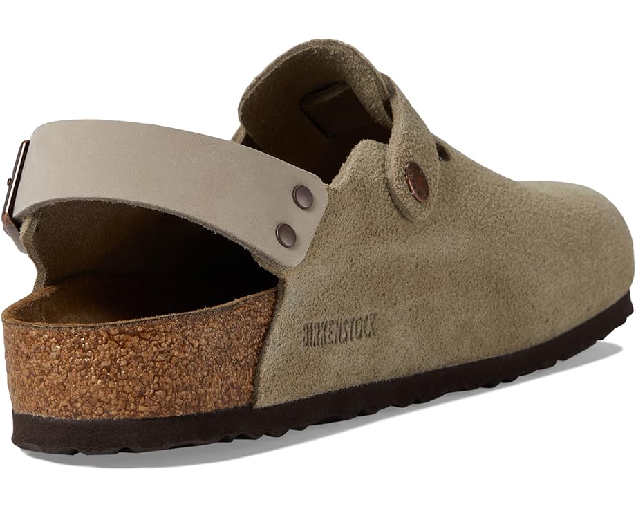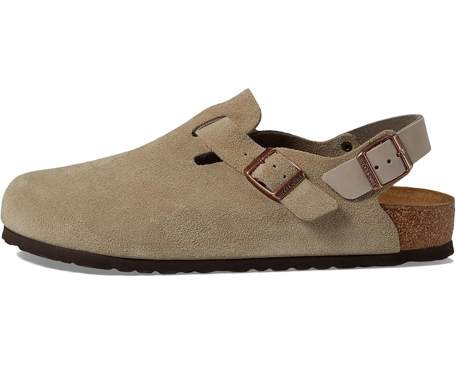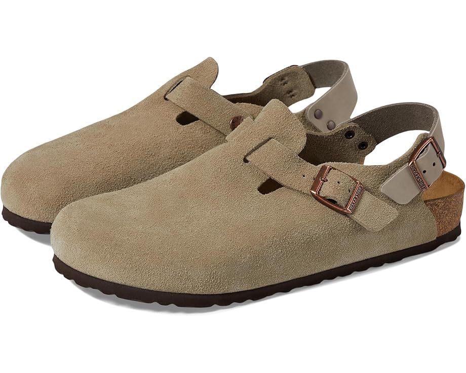 • Walk into comfort and style with the Birkenstock® Tokio - Suede clog. Elevate your stride with its plush suede upper and cozy suede insole. Designed for all-day wear, it boasts an EVA outsole for lightweight cushioning and durability. The backstrap buckle closure ensures a secure fit, while the round toe offers ample room for your toes. Perfect for work or casual outings, the Tokio clog combines classic BIRKENSTOCK comfort with a modern twist.