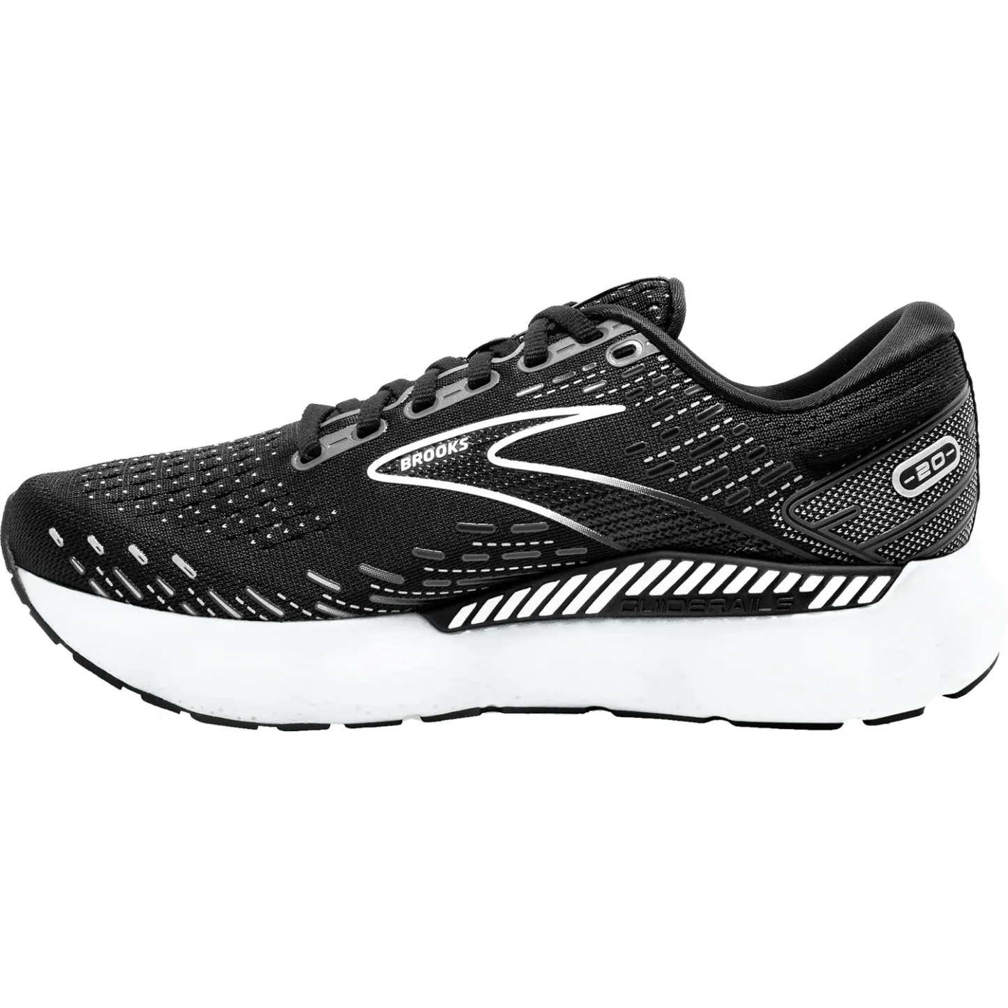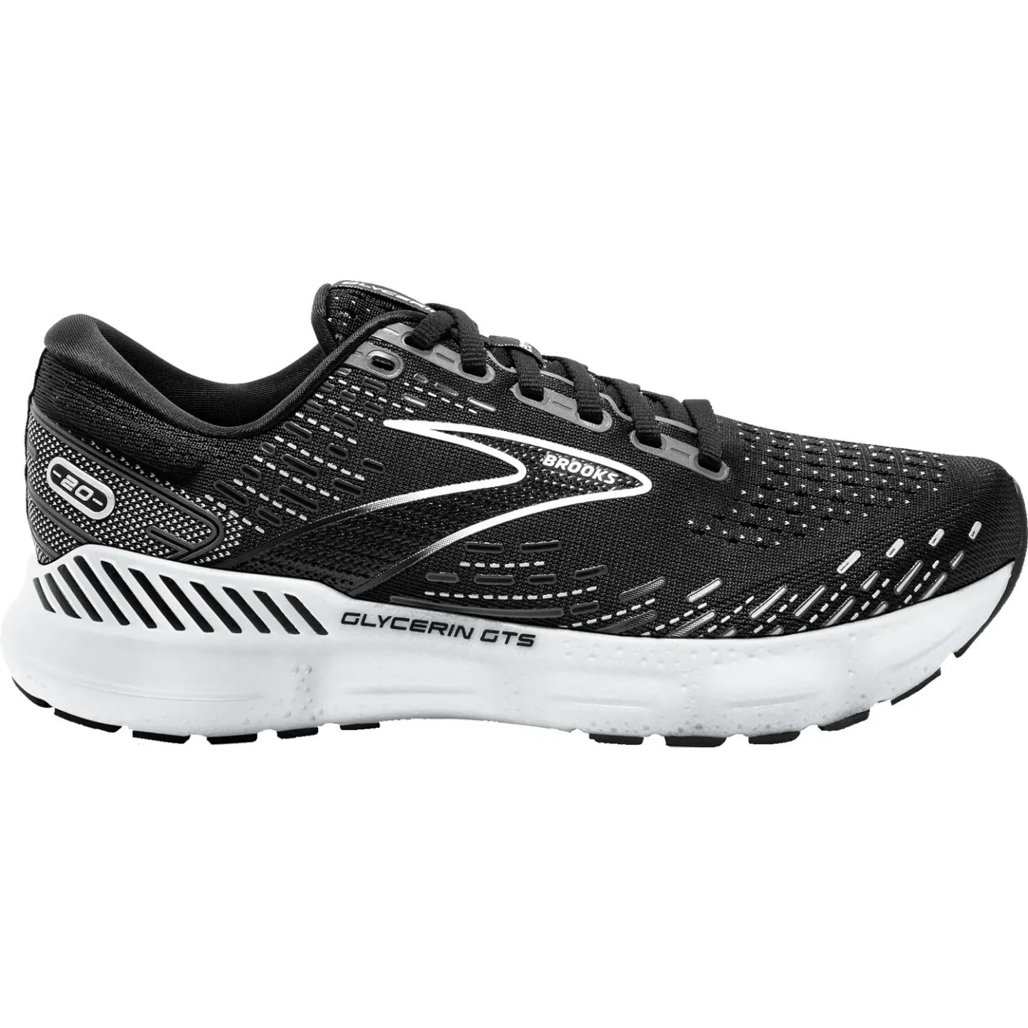 These Brooks Glycerin GTS 20 Black/White/Alloy Mesh Women's Shoes have the following features: